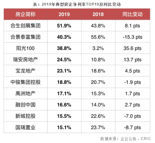 2019年,旭辉、华润、新城控股等大型房企都出现利润率下滑的现象。