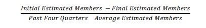 (公式:初始估计成员-最终估计成员/过去的四个季度的平均估计人数)