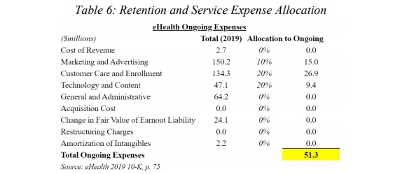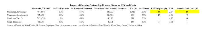 我们估计,易康在每个MA会员的生命周期内为他们服务的费用为45美元(每年19美元)。据我們所知,約有15%至20%的易康的會員是透过合作关系转介而来的的,而這些行銷合作關係主要集中在醫療保險和聯邦醫療保險補助金類別 。我们还了解到,支付给合作者的分成约为所获佣金的15%至25%。根据我们与前员工和行业高管的谈话,我们认为,易康每年约有2%的运营费用,即870万美元,用于支付此类费用。在2019年,MA在此类费用中的份额约为19美元,即在2.34年内,每个MA会员约为45美元。