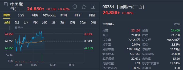 智通财经APP获悉,大和发布报告称,下调中国燃气(00384)目标价6%,由25港元调低至23.5港元,评级由“持有”降至“跑输大市”。