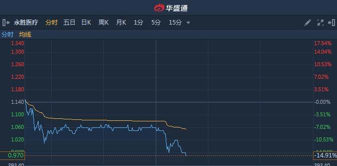 智通财经APP获悉,永胜医疗(01612)结束三连阳,午后跌幅扩大逾14%。截至13时34分,跌14.91%,报价0.97港元,成交额4389万。