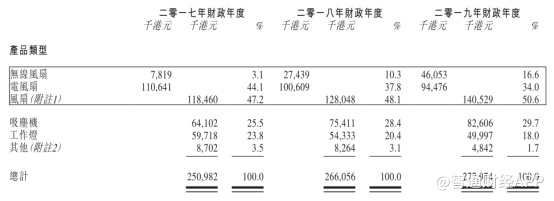 风光无两,如今蚬壳电业的生产业务,主要围绕在无线风扇、吸尘机、工作灯三类组件上。而从产品的收入构成来看,蚬壳电业如今依旧在做公司的老本行风扇产品。2019年,风扇产品占据了公司50.6%的收入比重。