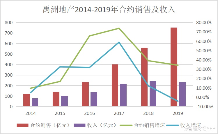 在房地产政策整体偏紧的背景下,房企增速普遍放缓,2019年全国商品房销售额同比仅增6.5%,禹洲地产仍能保持30%以上的增长实属不易。