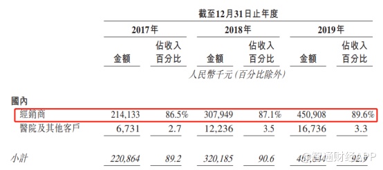 目前公司的收入来源主要通过经销商渠道。财报显示,2017-2019年,康基医疗通过经销商的收入占比从86.5%增长89.6%,而公司直接的医院渠道收入已降至3.3%。
