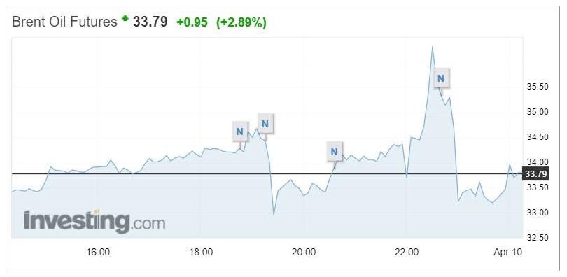 4月9日周四,沙特和俄罗斯等OPEC+产油国的会议引发国际原油巨震。当天稍早媒体称,沙特和俄罗斯就深度减产达成协议,产油国将讨论减产至多2000万桶,美油布油日内涨幅相继超过10%。后媒体称,OPEC+勾勒的石油减产协议大纲是减产1000万桶/日,未来两个月将减产1000万桶,油价涨幅大幅回落,在媒体称OPEC+讨论减产1200万桶、希望其他国家减500万桶后,涨幅略有扩大,在媒体爆出OPEC+至多减产1000多万桶的细节后,油价抹平涨幅转跌。
