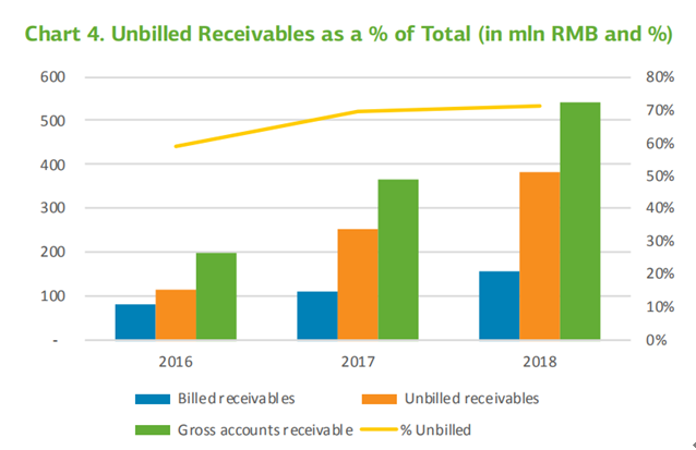 “2018年5.41亿元的应收账款中,约71%是没有发票的(后期无法保证结算)。这71%应收账款占2018年收入的14%,为28亿元。其余的1.56亿元应收账款相当于年收入中的三周收入。也许万国数据会解释,发票会延后一个月或一季度开,这也是苍白无力的。世纪互联(VNET.US)、EQUINIX(EQIX.US)等公司未有未开单应收账款。”