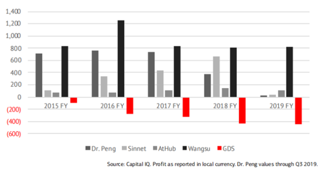 2015年至今公司烧钱(筹资现金流)已经达137亿元,这是因为从2006年开始,万国数据获利能力就落后于同业。其资本开支是对手的两倍。