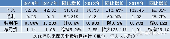 从2016年至2019年,摩贝的收入从32.06亿人民币增至132.46亿元,翻了4倍多,但仍未能实现盈利。未盈利的关键在于,公司的毛利率极低。智通财经App发现,摩贝2016-2017年的毛利率均未超1%,虽然公司业务规模迅速扩大,但毫无规模效应。