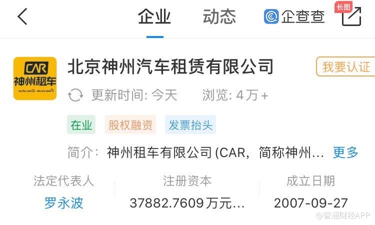 智通财经APP获悉,企查查数据显示,4月10日,北京神州汽车租赁有限公司(简称神州租车,代码:00699)发生工商变更,陈建松卸任法定代表人,罗永波接任。罗永波目前是神州优车、神州租车多家附属公司负责人。神州租车方面对此消息暂无回应。