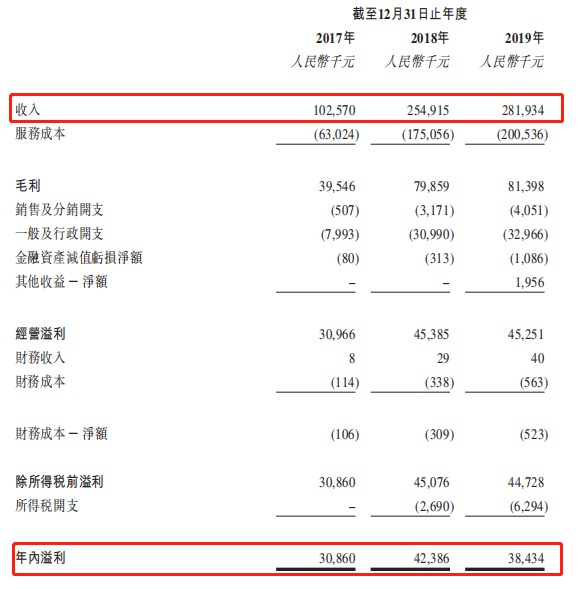 截至2019年12月31日止三个年度,溢利分别为人民币3086万元、人民币4238.6万元及人民币3843.4万元。