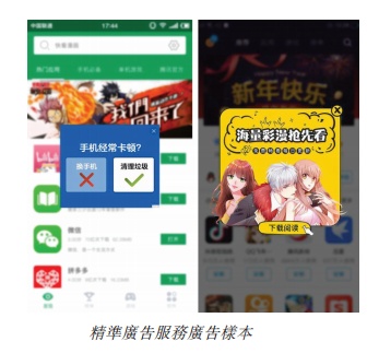 精准广告服务广告通常以例如在由媒体发布商营运的移动应用程序出现的弹屏广告等形式展示,借此触发目标受众采取客户期望的行动。