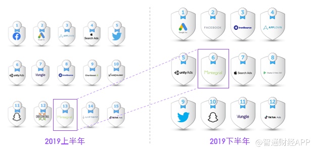 智通财经APP注意到,Mintegral是AppsFlyer报告里自2018 年来唯一的新面孔,但其发展增速惊人。2019年上半年,Mintegral即在AppsFlyer2019上半年的全球综合实力榜中位居第13名,2019年下半年即窜升到第6名,后一直保持至今。