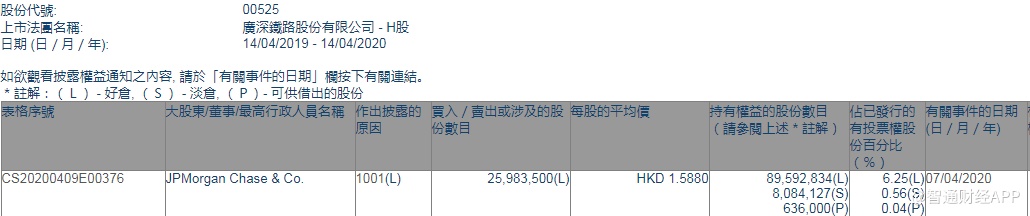 智通财经APP获悉,联交所最新资料显示,4月7日,摩根大通增持广深铁路股份(00525)