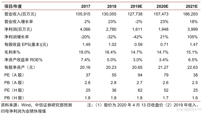 预计2020年Q2销量环比改善,全年业绩前低后高。2020Q1受到卫生事件影响,公司电动车销售2.2万辆,同比-70%(其中电动乘用车-70%、电动商用车-66%),燃油车销售3.9万辆,同比-12%。公司电动车销量份额占中汽协一季度11.4万辆行业总销量约20%,与去年基本持平,保持了国内市场份额稳定。伴随4月起国内卫生事件好转以及各地汽车消费刺激政策推动,预计二季度公司产销有望随行业逐步恢复。根据公司计划,2020年公司新车型“汉”即将上市,唐、秦、宋等王朝系列也将有改款。下半年公司产销有望企稳回升,预计全年业绩前低后高。