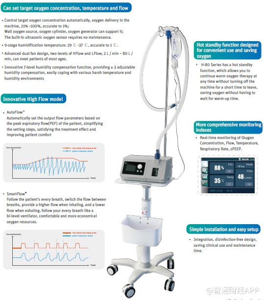 据悉,首批分销合作机型为新冠疫情下急缺的机型——BMC H-80系列高流量湿化氧疗仪。该机型可提供最高80L/min的空氧混合气体,吸入氧浓度可自动设置,提供独家专利的AutoFlow功能,SmartFlow功能。