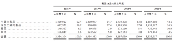 业务全面发力的情况下,公司2019年业绩迎来爆发式增长。智通财经APP了解到,2019年度,公司生鸡肉产品、加工鸡肉产品、鸡苗价格分别同比上涨19.2%、6.7%、91. 9%至11.8元、20.6元和7.1元,其中加工鸡肉产品和鸡苗更是录得量价齐升。因此在营收规模端,公司生鸡肉制品、深加工鸡肉制品、鸡苗及其他业务,分别同比增长9.78%、21.09%、147.78%、46.67%至18.87亿元、14.33亿元、4.26亿元和1.79亿元,最终带动整体营收规模实现22.81%同比增长至39.26亿元。