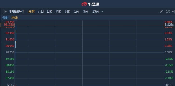 智通财经APP获悉,获央视《新闻联播》点赞,平安好医生(01833)延续涨势,盘中高见93.4港元,再度刷新历史新高,截至9时45分,涨3.32%,报价93.25港元,市值逼近1000亿港元。