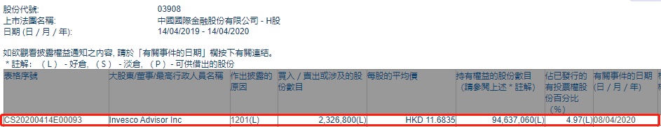 智通财经APP获悉,联交所最新资料显示,4月8日,Invesco Advisor Inc减持中金公司(03908)232.68万股,每股作价11.6835港元,总金额约为2718.52万港元。智通财经APP获悉,减持后最新持股数目约为9463.71万股,最新持股比例为4.97%。