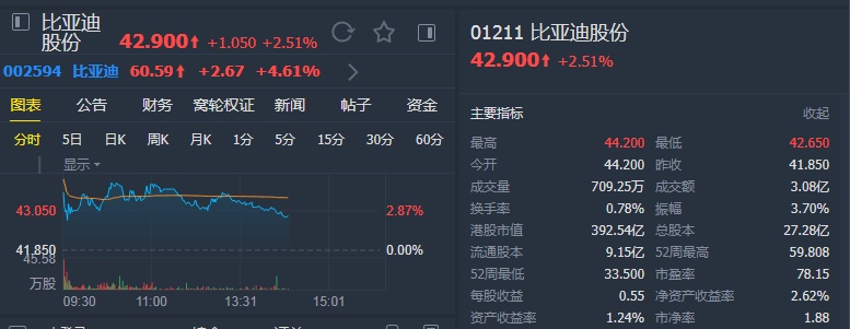 中金表示,维持比亚迪盈利预测不变,由于前期已将比亚迪半导体300亿元人民币纳入估值,维持比亚迪“跑赢行业”评级,和A/H股目标价各84元人民币和64.5港元不变。