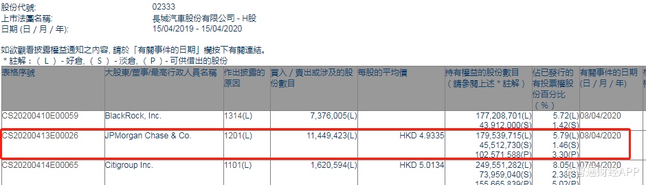 智通财经APP获悉,联交所最新资料显示,4月8日,摩根大通减持长城汽车(02333)1144.94万股,每股作价4.9335港元,总金额约为5648.56万港元。智通财经APP获悉,减持后最新持股数目约为1.80亿股,最新持股比例为5.79%。