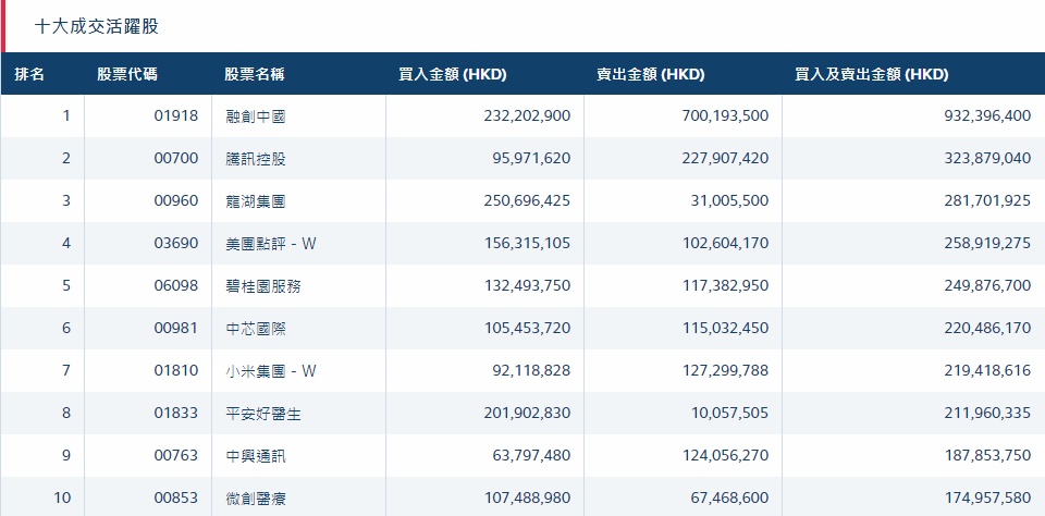 此外,龙湖集团(00960)、美团点评-W(03690)、微创医疗(00853)分别获5.2亿、1.85亿、4002万港元。而中兴通讯(00763)遭净卖出6025万港元。