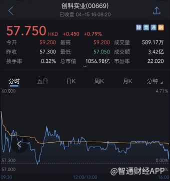 截至今日收盘,创科实业涨0.79%,报57.75港元。