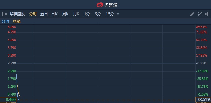 智通财经APP获悉,次新股华和控股(09938)惨遭洗仓,早盘暴跌逾80%,低见0.4港元,跌破发售价0.5港元,暂居跌幅榜首位。截至9时36分,跌83.33%,报价0.465港元,成交额1383万。