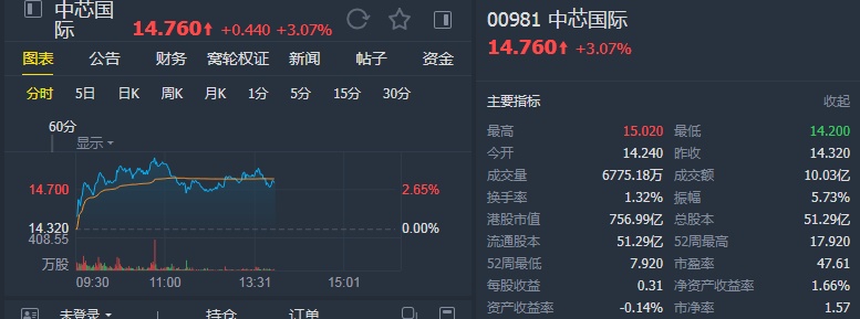 该行预计,相信中芯可借着12纳米及14纳米收入快速上升,令其业务具有更多防守性。该行表示,决定将中芯纳入该行“确信买入”名单,重申对其“买入”评级及目标价19.6港元,此相当预测2021年市账率1.9倍。