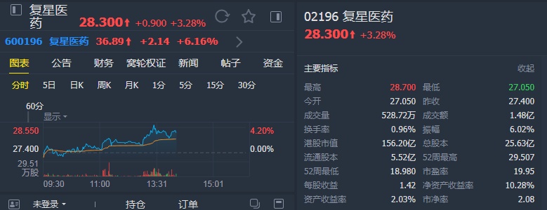 智通财经APP获悉,美银美林发布报告称,上调复星医药(02196)2022年后的销售增速,由于部分创新药有机会获批。该行表示,调整公司开支、资本开支及营运资本的预测,降今明两年每股盈利预测分别11%及7%,大幅上调2022年每股盈利预测1.4倍,目标价自28港元上调至33港元,维持“买入”评级。