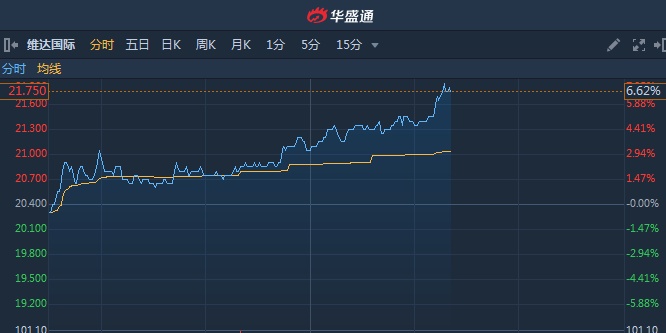智通财经APP获悉,维达国际(03331)延续涨势,午后涨幅扩大逾6%,股价逼近历史新高,截至14时20分,涨6.62%,报价21.75港元,成交额1.11亿。