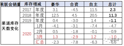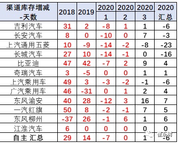 如果按照库存天数角度来看,自主品牌19年渠道库存增加一天的供应量,而1月份下降8天的供应量。,如果考虑到3月份库存仍处于下降状态,现有库存的知识效果也就相对弱化。,