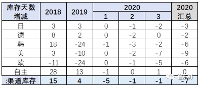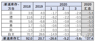 自主品牌在19年上半年去库存23万台,下半年加库存25万台,但随后2020年的1月份又去出15万台库存,因此自主品牌总体库存在2019~2020年还是下降的状态,