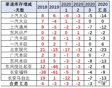 合资品牌的库存下降相对较大,2019年下降9万台库存,2020年1月份又下降9万台库存,2月下降5万台,3月下降9万台,合计下降23万台库存。