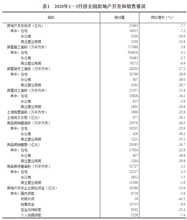 1—3月份,全国房地产开发投资21963亿元,同比下降7.7%,降幅比1—2月份收窄8.6个百分点。其中,住宅投资16015亿元,下降7.2%,降幅收窄8.8个百分点。
