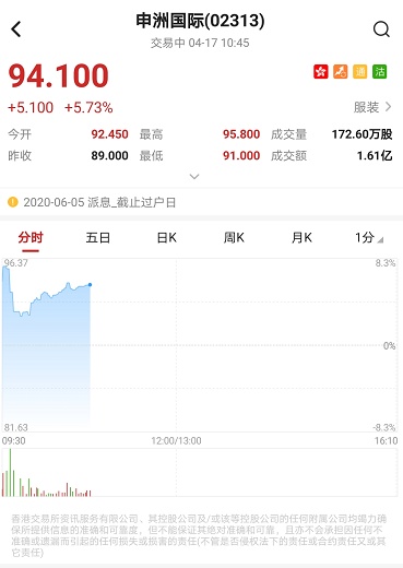 智通财经APP获悉,申洲国际(02313)获中金上调目标价10%至114.09港元,早盘股价大幅上扬,突破60日均线。截至10时41分,涨5.56%,报价93.95港元,成交额1.57亿。