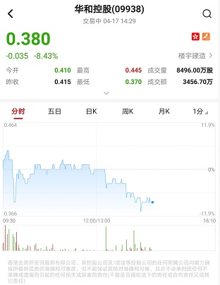 智通财经APP获悉,次新股华和控股(09938)昨日(4月17日)曾收跌逾85.13%,并发布公告指,不知悉股价异动原因。该股今日延续跌势。