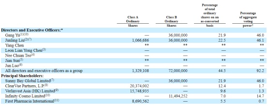 First Pharmacia International持有5.5%的股权(代表8,690,562股A类普通股,持股数保持不变,持股比例此前为5.3%),及0.7%的投票权(保持不变)。