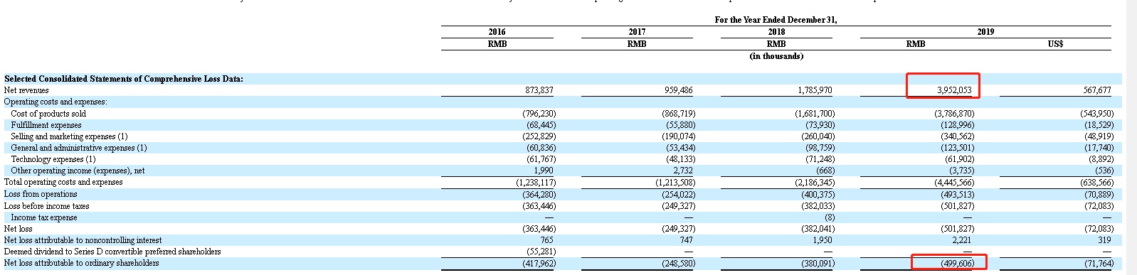 净亏损5.018亿元人民币(合7210万美元),2018年录得净亏损3.82亿元人民币。