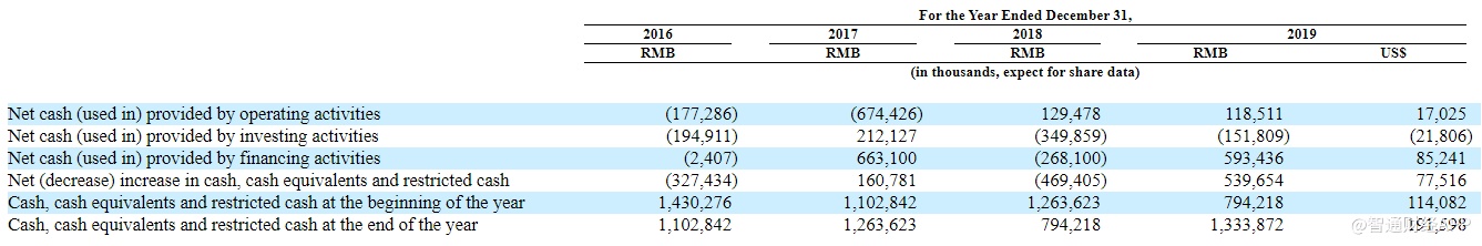 截至2019年12月31日,该公司拥有110.370亿元人民币(1.585亿美元)的现金和现金等价物以及限制性现金。流动负债总额为人民币27.712亿元(3.981亿美元),主要包括应付账款,短期银行借款,应计费用、其他应付款和客户的可退还费用。