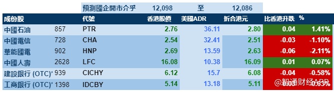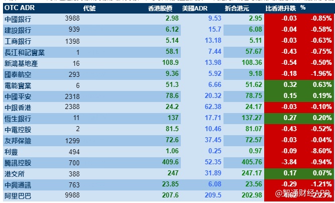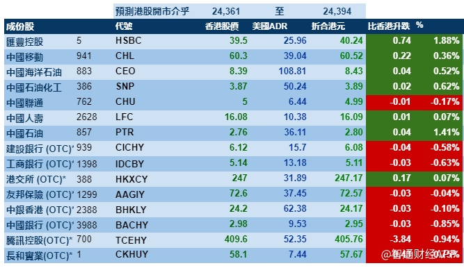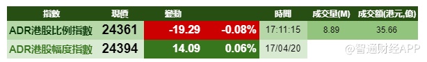 智通财经APP获悉,隔夜美股继续大涨,但港股ADR指数表现偏软,按比例计算,收报24361点,跌19.29点或0.08%。