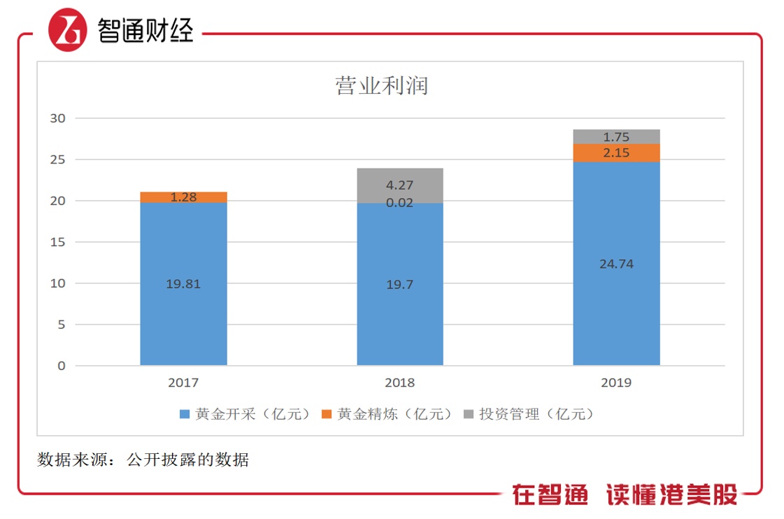 在黄金产量稳定的情况下,业绩对价格的依赖度就比较高了。从往年看,该公司的业务分部比较稳定,黄金精炼业绩贡献保持在90%以上,2019年为92.19%,新业务投资管理业绩贡献为2.96%。黄金开采为产业链上游,主要为黄金精炼供应材料,每年产生的内部交易都很高,由于供应链优势,成本降低。