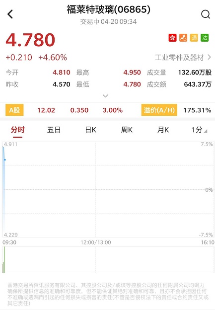 智通财经APP获悉,福莱特玻璃(06865)公布,截至2020年3月31日止第一季度,实现营业收入12.03亿元,同比增长29.13%;归属于上市公司股东的净利润2.15亿元,同比增长97.01%。截至发稿,福莱特玻璃涨4.81%,报4.79港元,成交额662.95万港元。