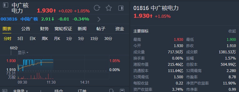 基于中广核须支付附加服务费用,及更高研发费用,该行下调其今明两年盈测1%至5%,目标价相应下调4%至2.3港元,维持“买入”评级。