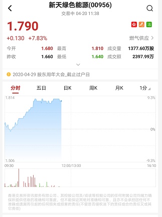 智通财经APP获悉,新天绿色能源(00956)延续涨势,一季度完成发电量同比增加1.71%至271.23万兆瓦时。截至11时38分,涨7.83%,报1.79港元,成交额2397.99万港元。