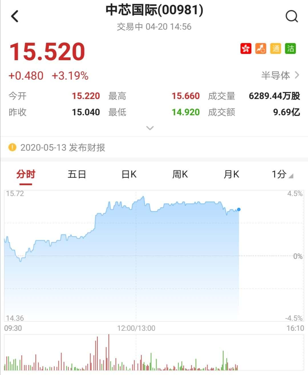 智通财经APP获悉,中芯国际(00981)获高盛列入“确信买入”名单,目标价看高至19.6港元。截至14时56分,涨3.19%,报15.52港元,成交额9.69亿港元。
