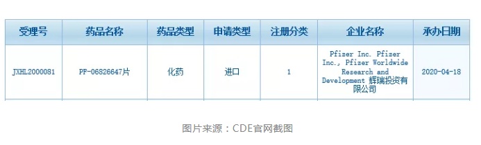 智通财经APP获悉,今日(4月20日),中国国家药监局药品审评中心(CDE)最新公示,辉瑞公司(PFE.US)旗下JAK抑制剂家族又一款在研产品——TYK2抑制剂PF-06826647在中国申报了一项临床并于4月18日获得CDE受理。