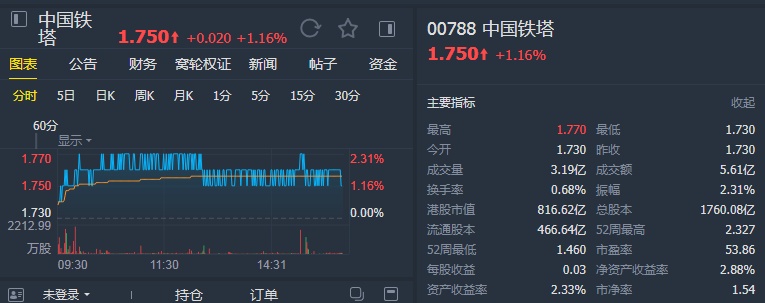智通财经APP获悉,大和发布报告称,中国铁塔(00788)首季收入同比增长4.2%;EBITDA利润率同比增长1.4个百分点;净利润同比增长13%至14.5亿元人民币。