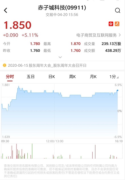 智通财经APP获悉,赤子城科技(09911)发布公告,拟收购全球化开放式社交平台MICO,并将对其合并财务报表,代价为人民币1亿元。收购事项交割后,赤子城网络技术将持有米可约25.62%的股权。截至发稿,赤子城科技涨5.11%,报1.85港元,成交额439.03万港元。