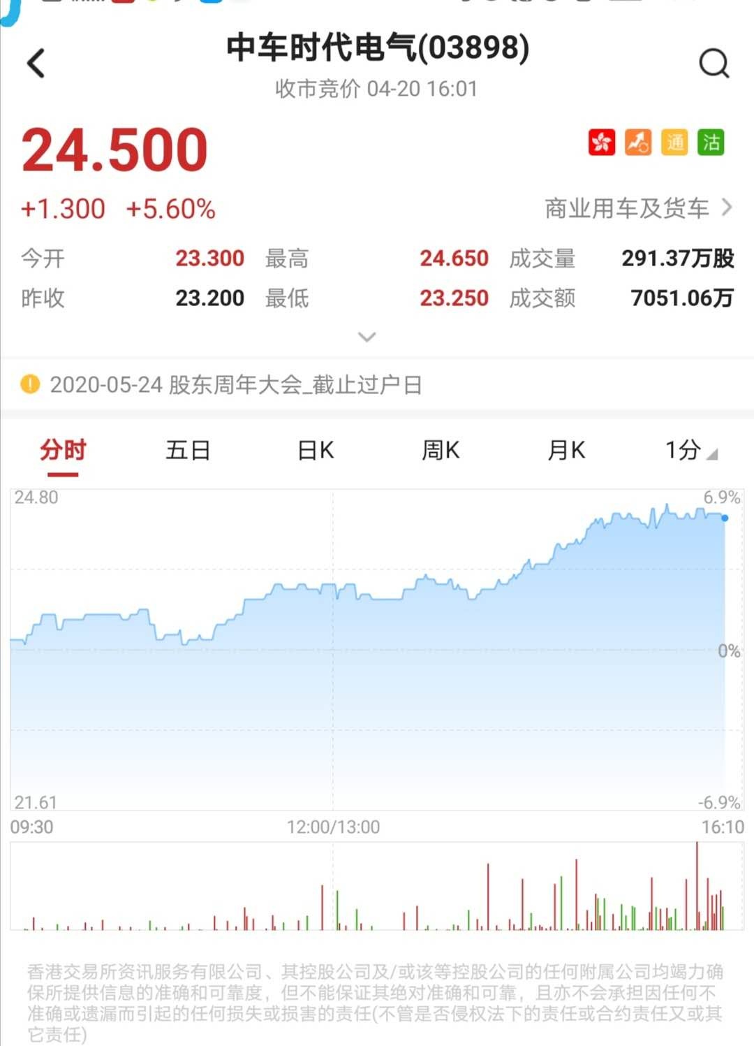 港股异动︱中车时代电气(03898)将于本周五披露首季报 现涨5.6%