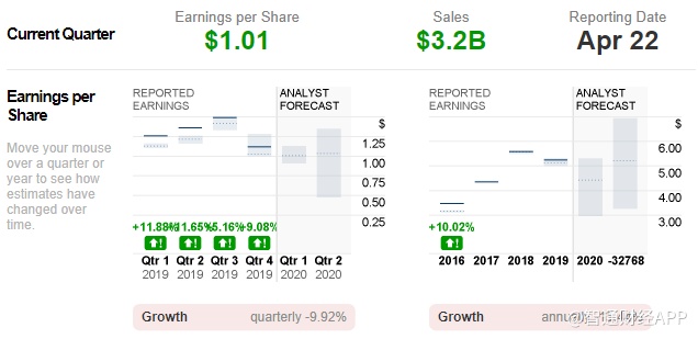 据Zacks数据显示,市场普遍预计该公司Q1营收为31.8亿美元,相当于同比下滑11.4%;在过去30天内,EPS预期下滑了1.9%至1.01美元,相当于同比下滑17.2%。
